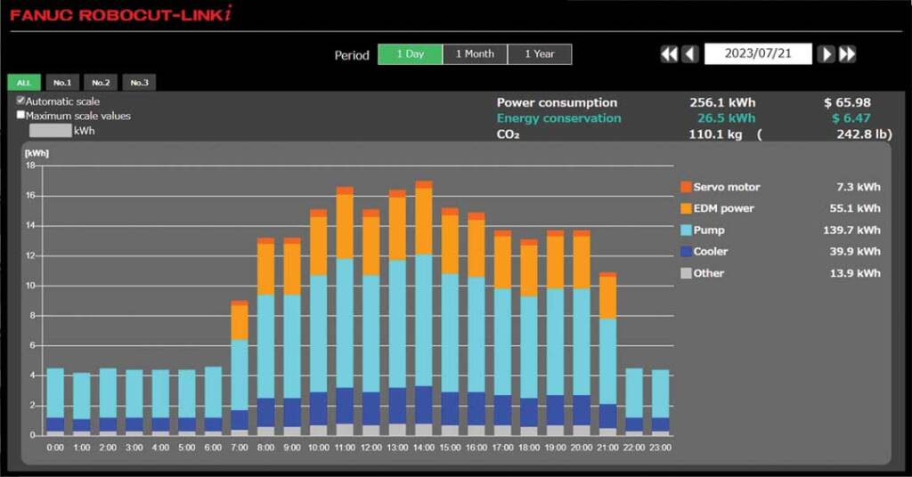 Representative graph showing FANUC ROBOCUT energy consumption