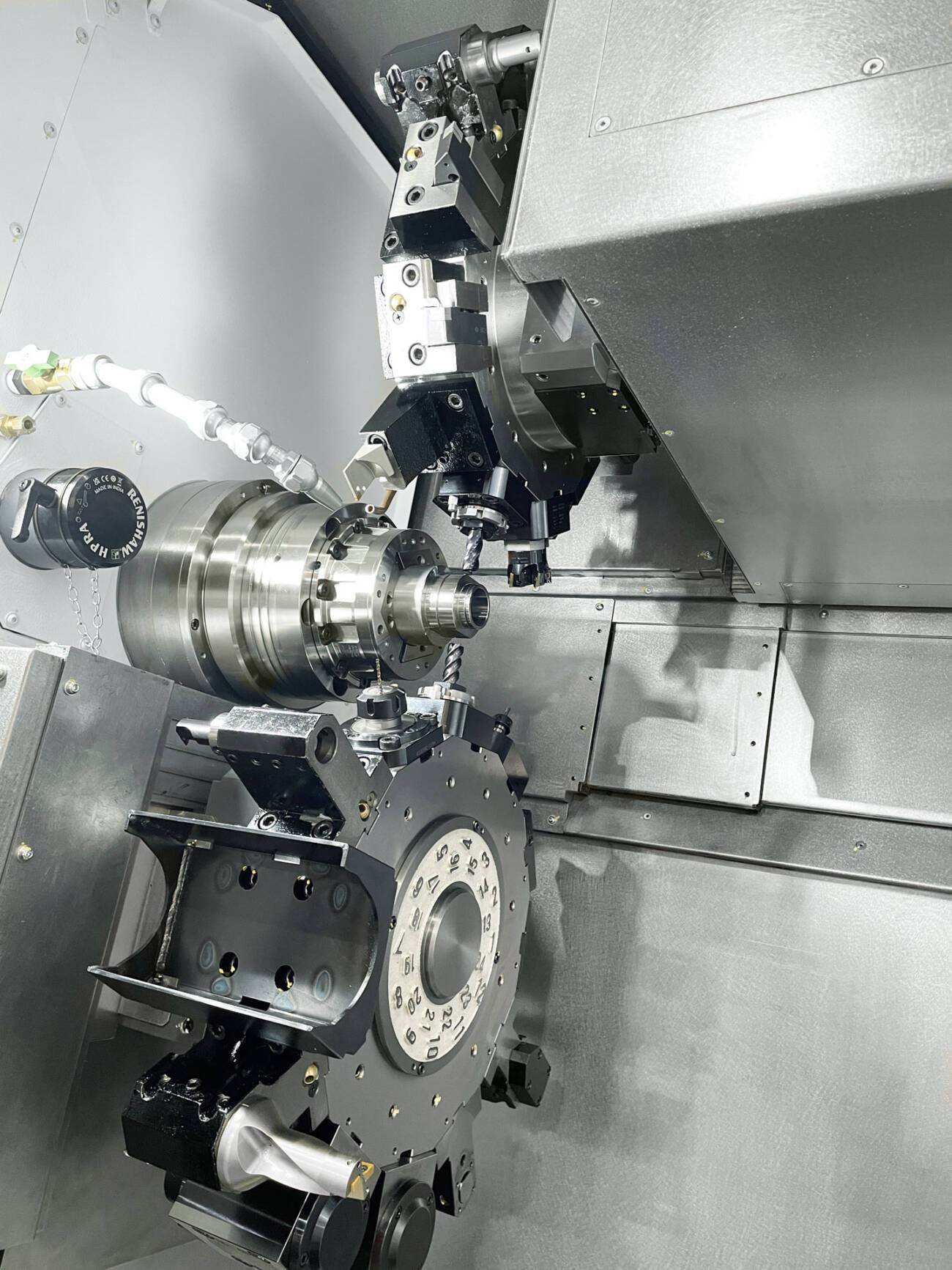 The Nakamura-Tome WY-150V is a twin spindle multitasking machine with two turrets, upper and lower, both with Y-axis. The third of the “V Series” multitasking machines, with speed as the design concept behind it. Thee is a Y-axis on the upper/lower turret and opposed twin spindles, all standard features of the WY-150V.