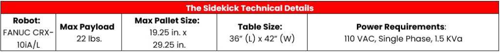 The Sidekick provides users the option to either setup end of arm tooling, part grid plates, and programming on their own; or purchase a “Ready-to-Run” package from Methods that comes pre-programmed with a standardized infeed/outfeed grid plate and end of arm tooling on the robot.