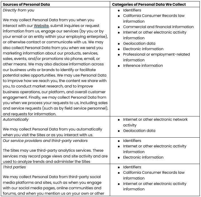 This Privacy Statement does not apply to our job opportunities hosted by Paylocity or to Personal Data we collect or use about job applicants or employees, except for California residents. We collect, use, and disclose Personal Data about job applicants or employees for different reasons than other Personal Data we may collect, use, or disclose. For information about how we collect, use, or disclose Personal Data about job applicants or employees who are California residents, please see the Additional Information for Job Applicants and Employees About the CCPA section. For information about how we collect, use, or disclose Personal Data about job applicants or employees who are located elsewhere, please contact us using the information in the Contact Us section.